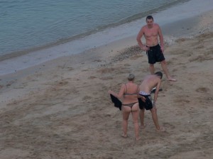 The lens cost him thirty pounds, and the adapter to make it work on a Panasonic double the price; but now he has an 800mm effective length lens, with plans to knock that up to 1600mm with a 2x adapter. And why on earth would he want such a beast? Apparently so he can sit on his balcony and capture the antics of the Russian tourists on the beach, such as the below which he proudly sent me this morning: