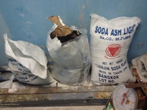 The enterprise required three ingredients: Instant coffee, Vitamin C and Washing Soda. I assumed the last would be the most difficult to obtain given the endless complaining on relevant forums, but a quick visit to the swimming pool pump room in our condo revealed big bags of Na2Co3, which anyone with any chemistry knowledge, or access to Google on their phone while standing in a pool room, will tell you is Sodium Carbonate, a.k.a. Soda Ash, a.k.a Washing Soda.