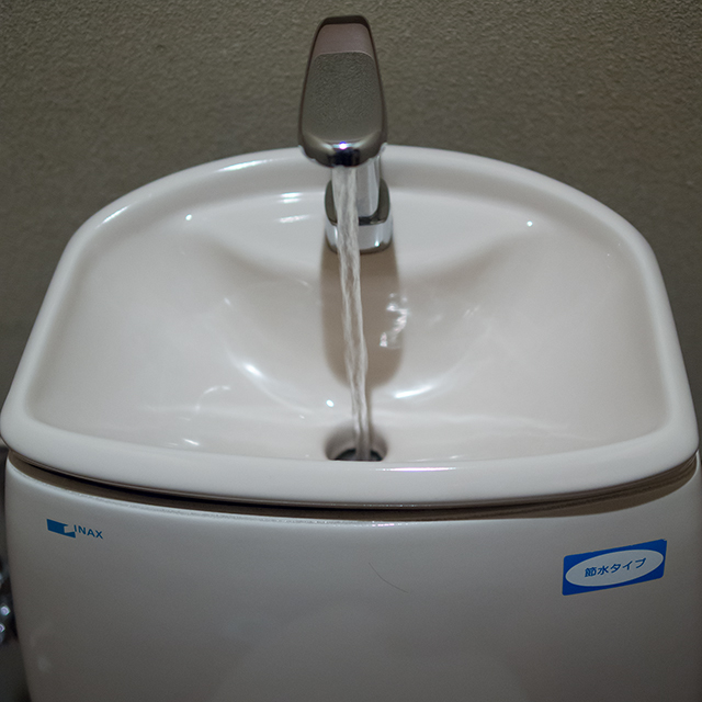 When you flushed this toilet, the refill water came out of a spout on top of the cistern; so you could wash your hands without wasting tap water at a sink. The only downside was that you had to wash your hands whilst standing over piles of poo being washed away. It will never catch on.